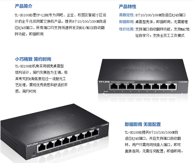 TP-LINK TL-SG1008D 8口千兆交換機(jī) 鋼殼高速1000M網(wǎng)絡(luò)tplink安防監(jiān)控交換機(jī)八口