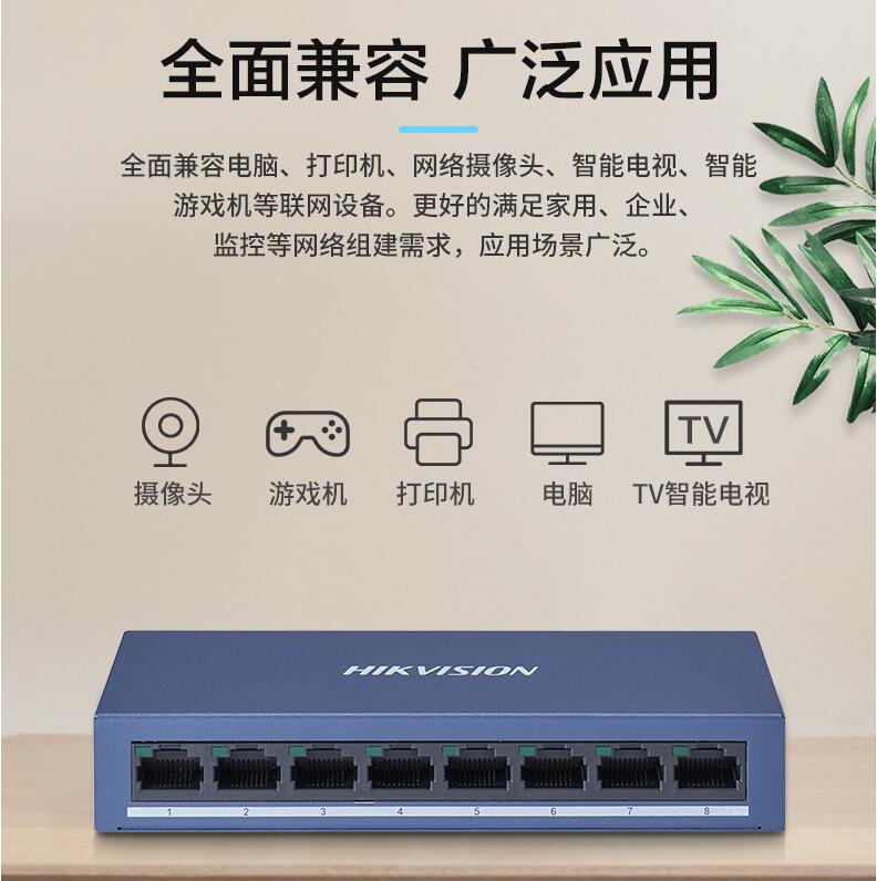 海康威視4/5/8/16/24口多口全千兆百兆交換機(jī)路由器分流器網(wǎng)絡(luò)集線器網(wǎng)線分線器家用小型宿舍學(xué)生寢室交換器