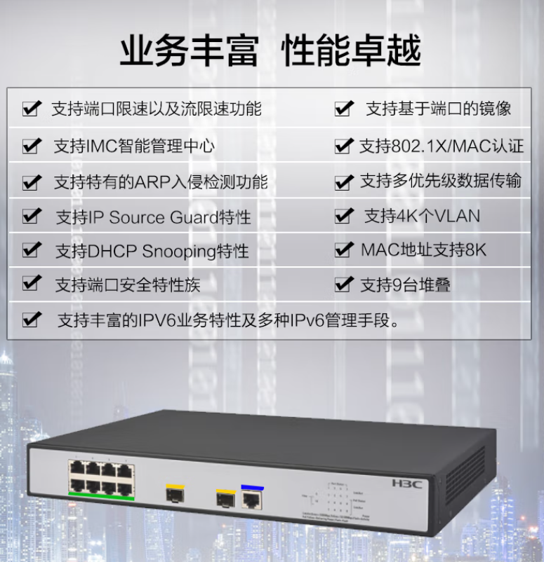 華三/H3C S5008PV5-EI 以太網(wǎng)交換機(jī) 8口千兆電口光口全雙工帶堆疊 S5008PV5-EI