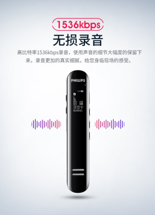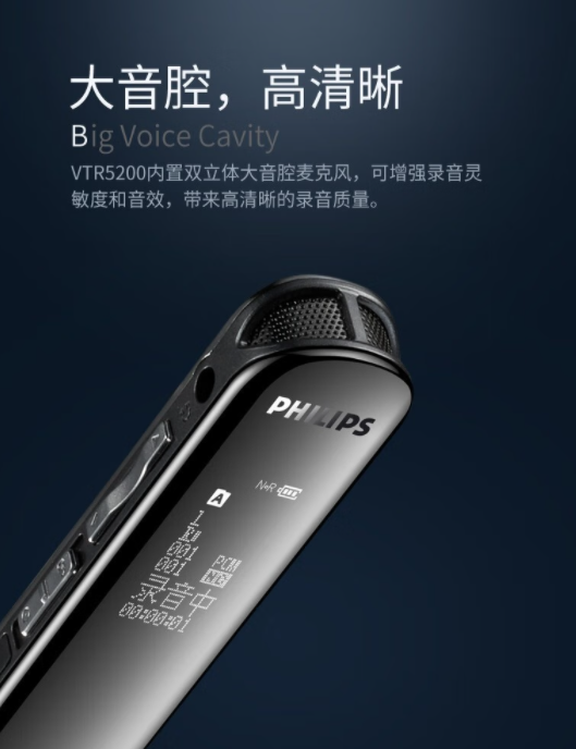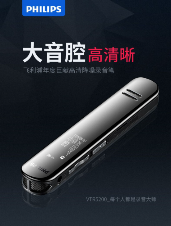 飛利浦/PHILIPS VTR5200 錄音外圍設(shè)備 8GB存儲專業(yè)超長待機(jī)高清降噪會議商務(wù)錄音 VTR5200