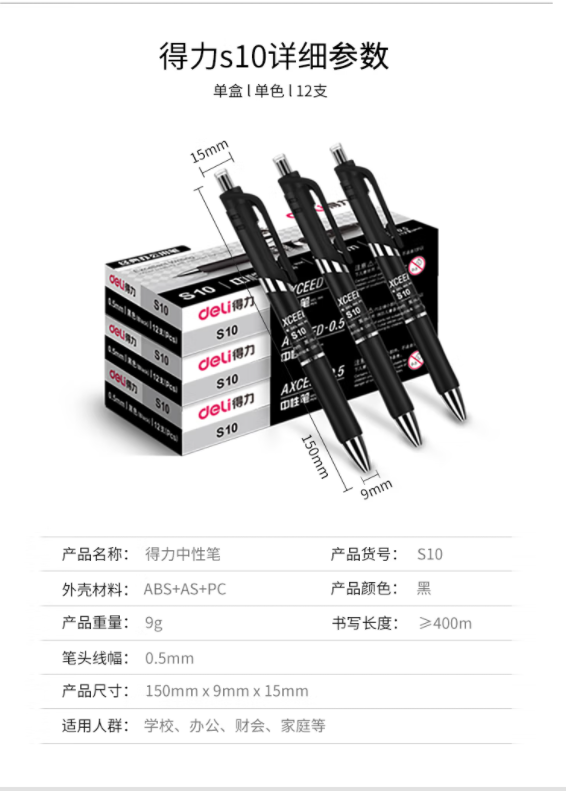 得力/deli s10 書寫用筆類用具 0.5mm子彈頭學(xué)生辦公按動(dòng)筆黑色 s10