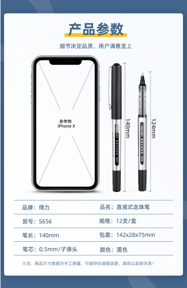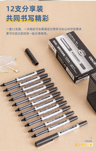得力/deli S656 書寫用筆類用具 商務(wù)直液筆簽字筆辦公中性筆水筆走珠筆【子彈頭】12支/盒 S656