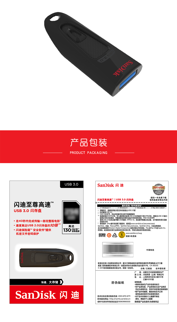 閃迪/SanDisk CZ48 U盤/存儲(chǔ)卡 USB3.0 黑色 32GB