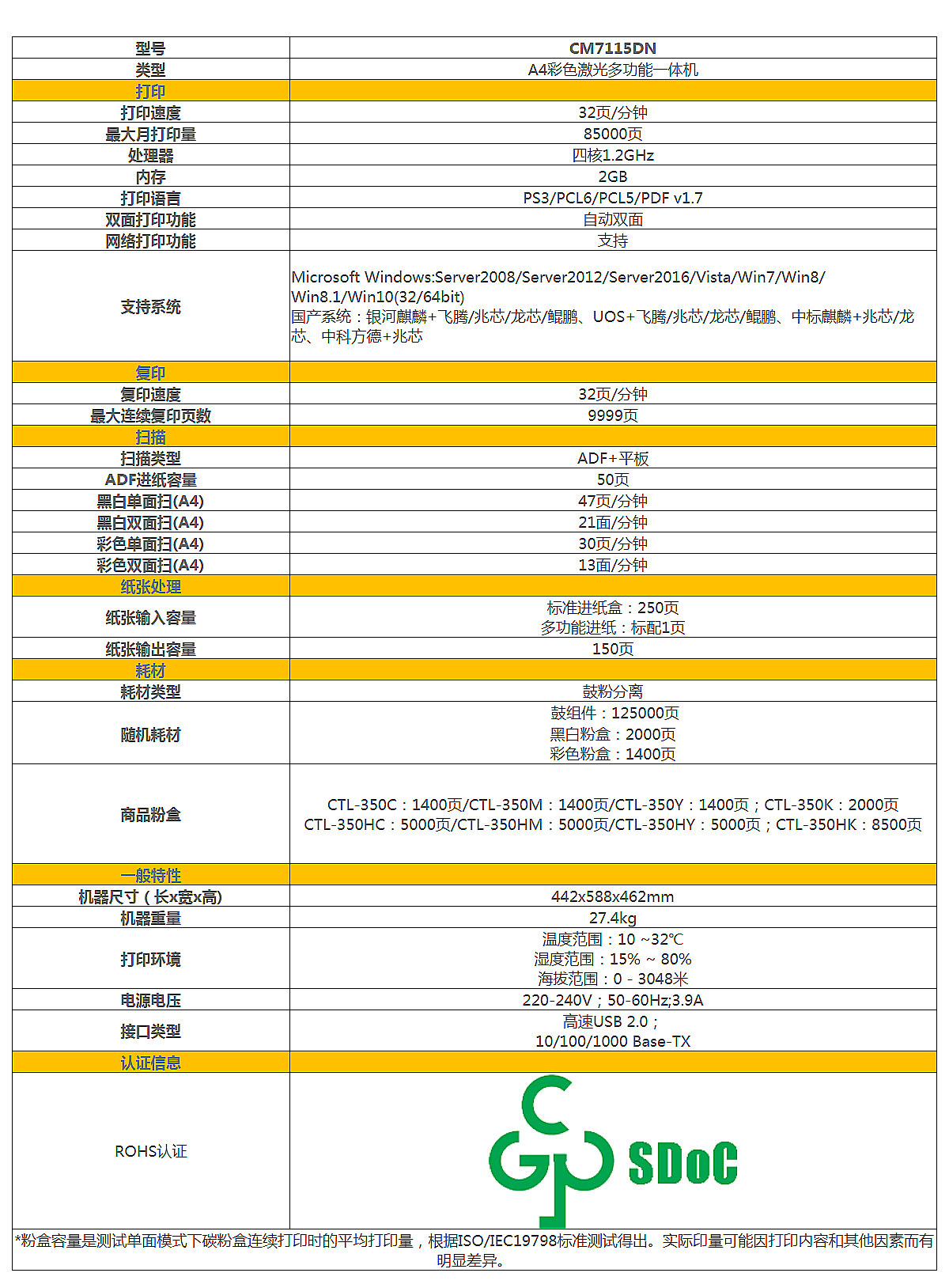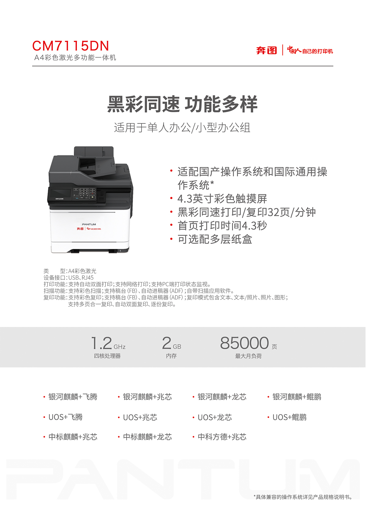 奔圖/PANTUM CM7115DN A4 彩色打印機 激光打印機