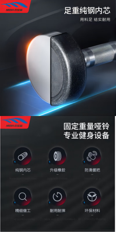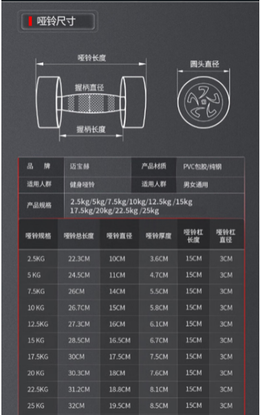 邁寶赫/MBH YL 臂力器 啞鈴 健身房專用器材 內(nèi)圓鋼 外包膠 275kg/套